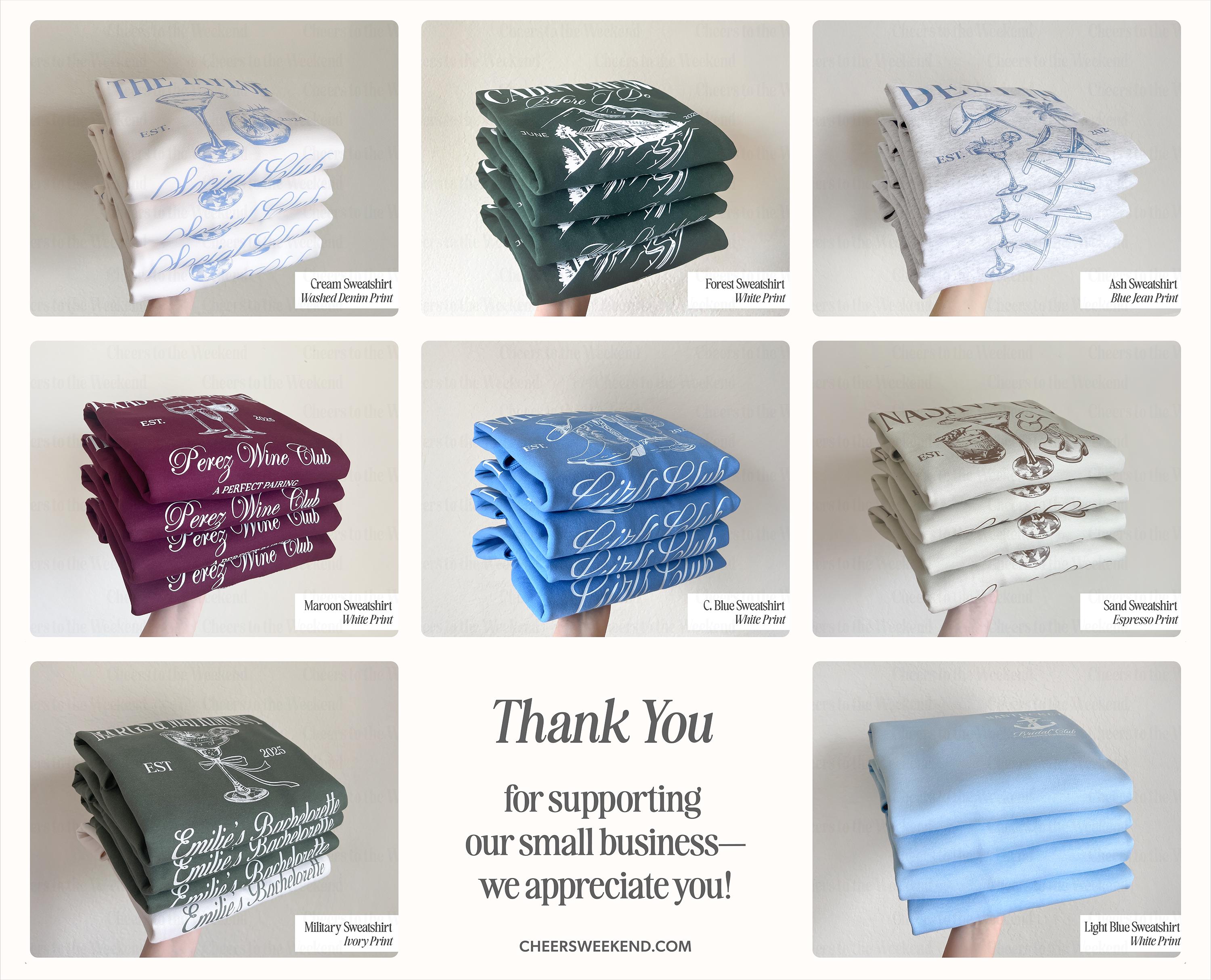 We work with different sweatshirt brands, so if you order different colors, they might come from various brands. However, they all have a similar fit and weight. We handpick the best available options to ensure top-notch quality for you! Cream sweatshirts are our favorite—they're the softest and highest quality, which is why they're slightly more expensive than the others.