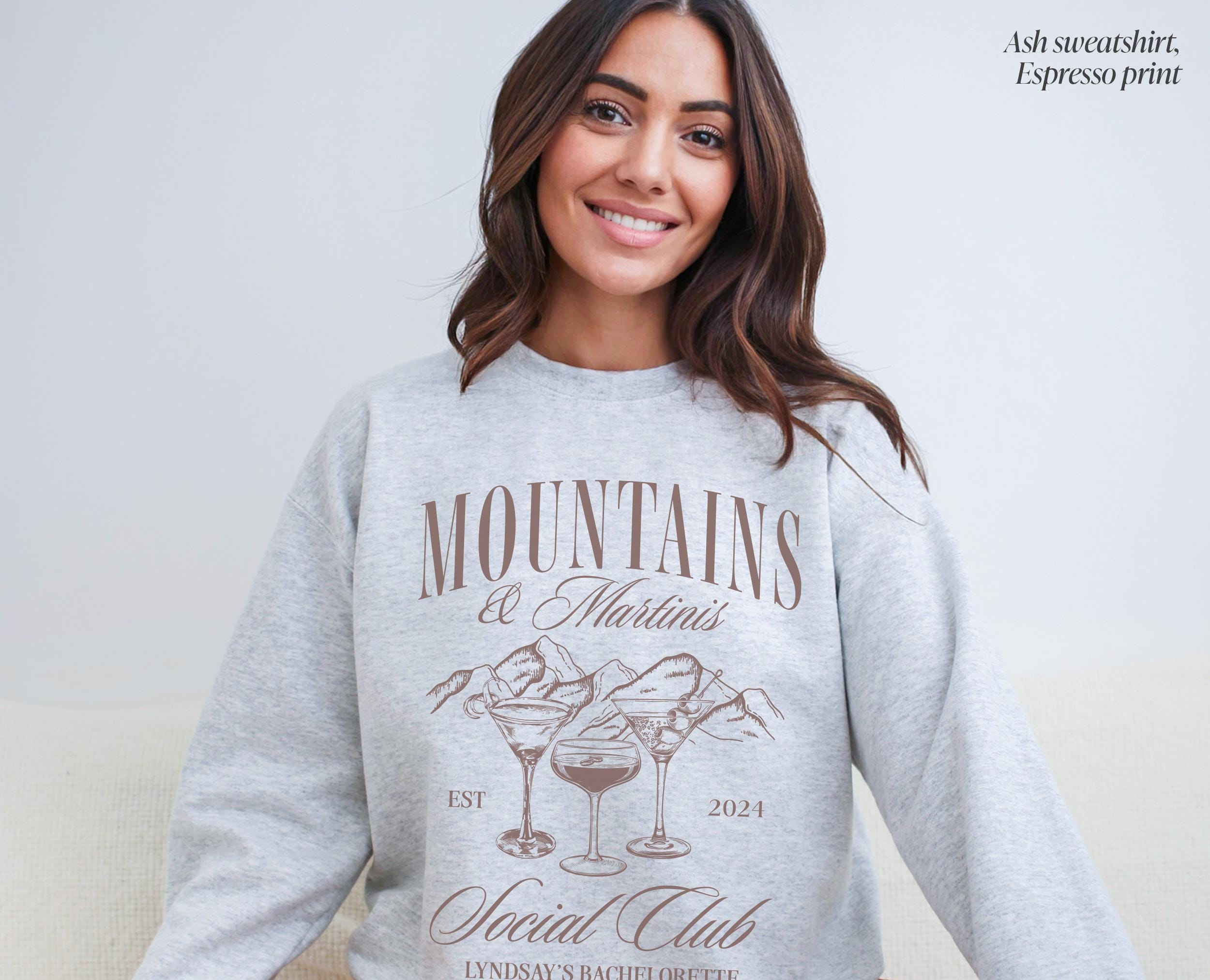 Mountains & Martinis Club Sweatshirt, Custom Bachelorette Sweatshirt, Personalized Luxury Bachelorette Sweatshirt